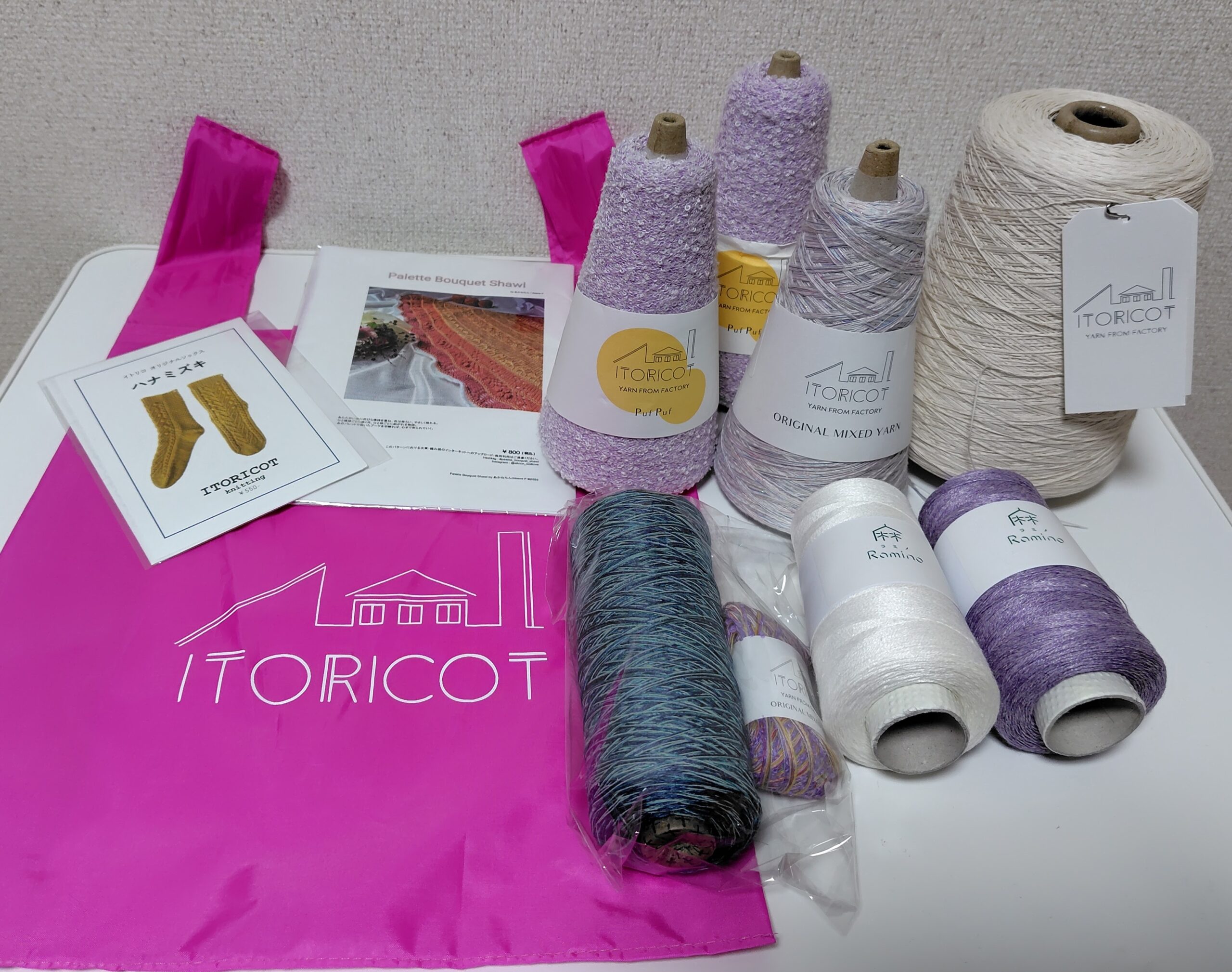 ITORICOさんは世界中の工業残糸やオリジナル糸を扱うお店で、オリジナル糸は細い糸を何本も引きそろえて手編み用の糸にしているので、正直くせが強くメーカーの手芸用糸に比べて編みやすいとは言いづらいけど、その分とてもラグジュアリーな配合の糸が格安だったり、いろんな色や素材の糸が引きそろえられていて、とてもかわいい💕