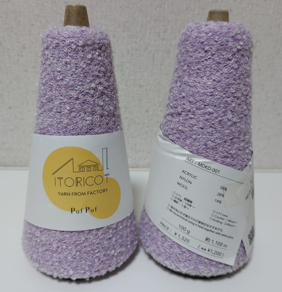 まず目についたのがPuf Pufというループ状の糸。お色はラベンダー杢