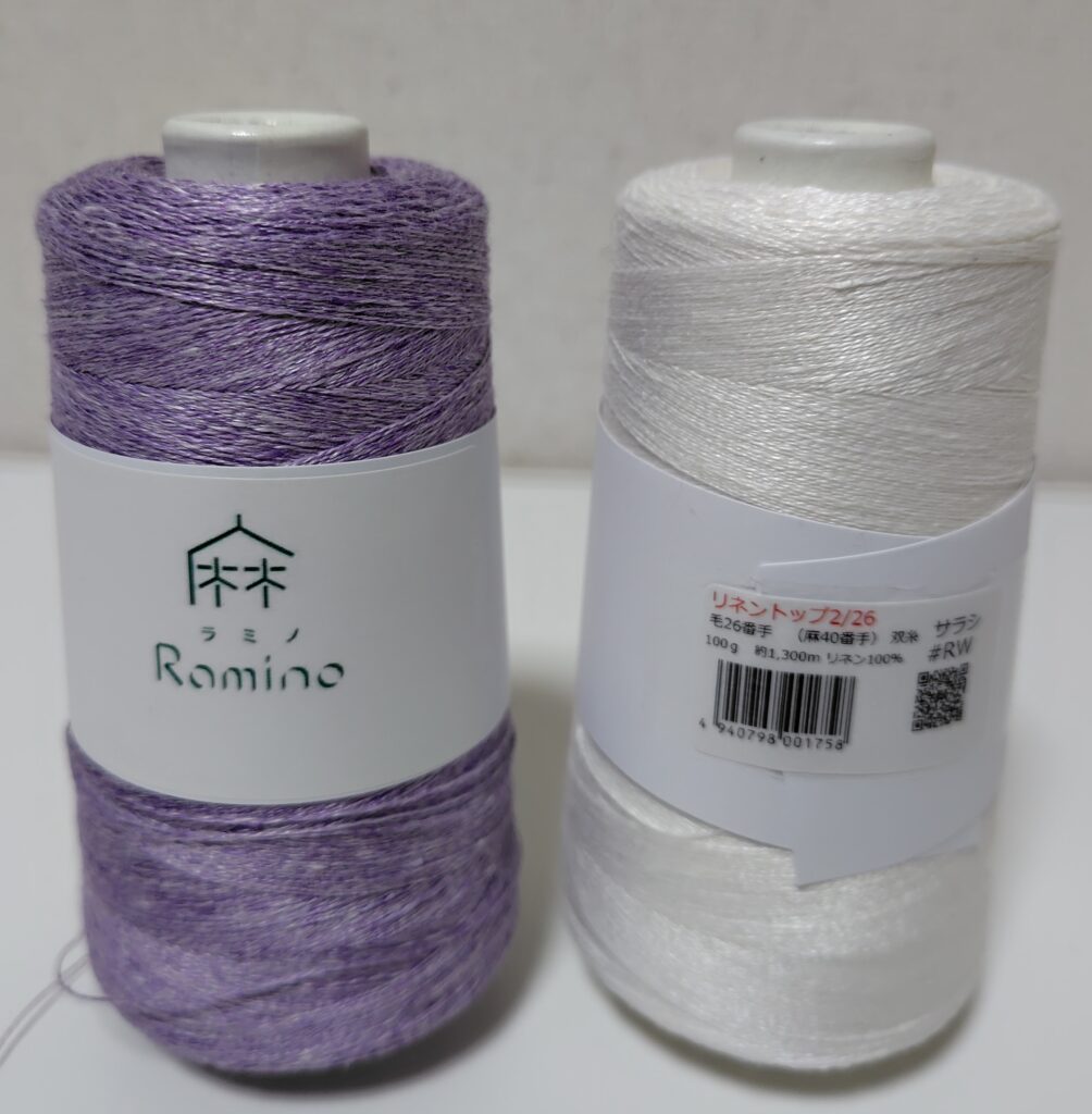 リネンの糸を合わせて、半そでのVネックプルオーバーを編みたいと思います。